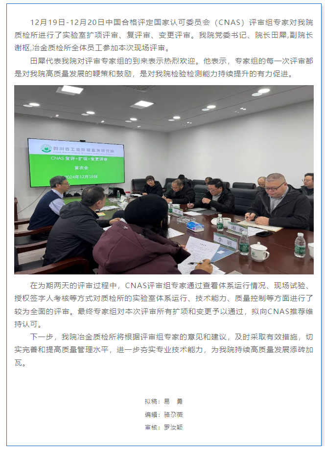 我院冶金质检所开展CNAS扩项、复评、变更评审会议