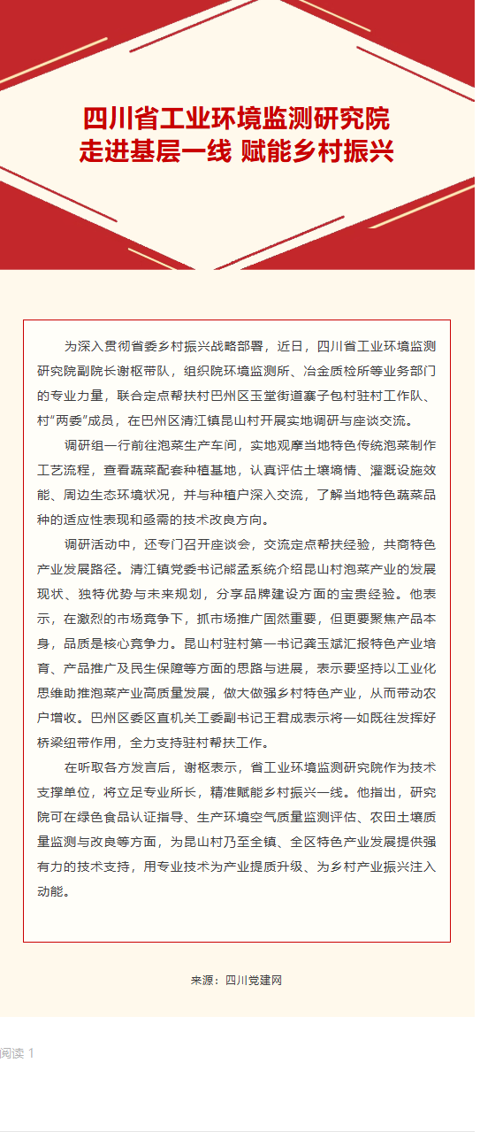 转发 | 四川省工业环境监测研究院:走进基层一线 赋能乡村振兴
