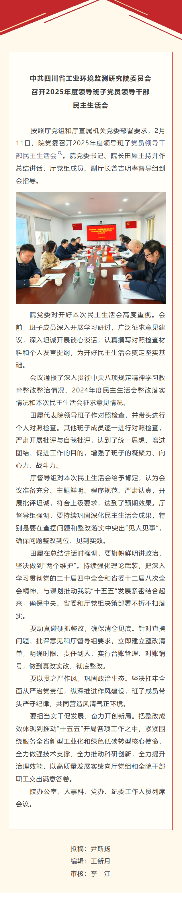 中共四川省工业环境监测研究院委员会召开2025年度领导班子党员领导干部民主生活会