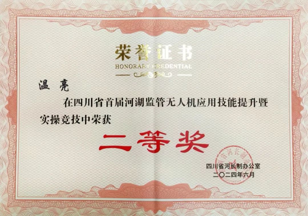 热烈祝贺我院温亮同志荣获四川省首届河湖监管无人机应用技能提升暨实操竞技活动个人二等奖