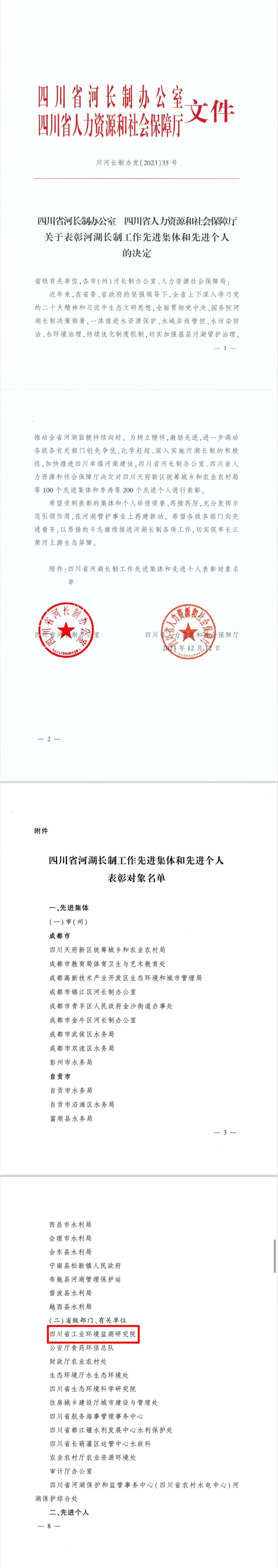 近年来,为深入学习党的二十大精神和习近平总书记生态文明思想,全面贯彻党中央、国务院河湖长制决策部署,切实加强基层河湖管护治理、推动全省河湖面貌持续向好,四川省河长制办公室、四川省人力资源和社会保障厅对100个先进集体和200个先进个人进行了表彰。其中,我院荣获“四川省河湖长制先进集体”荣誉称号。