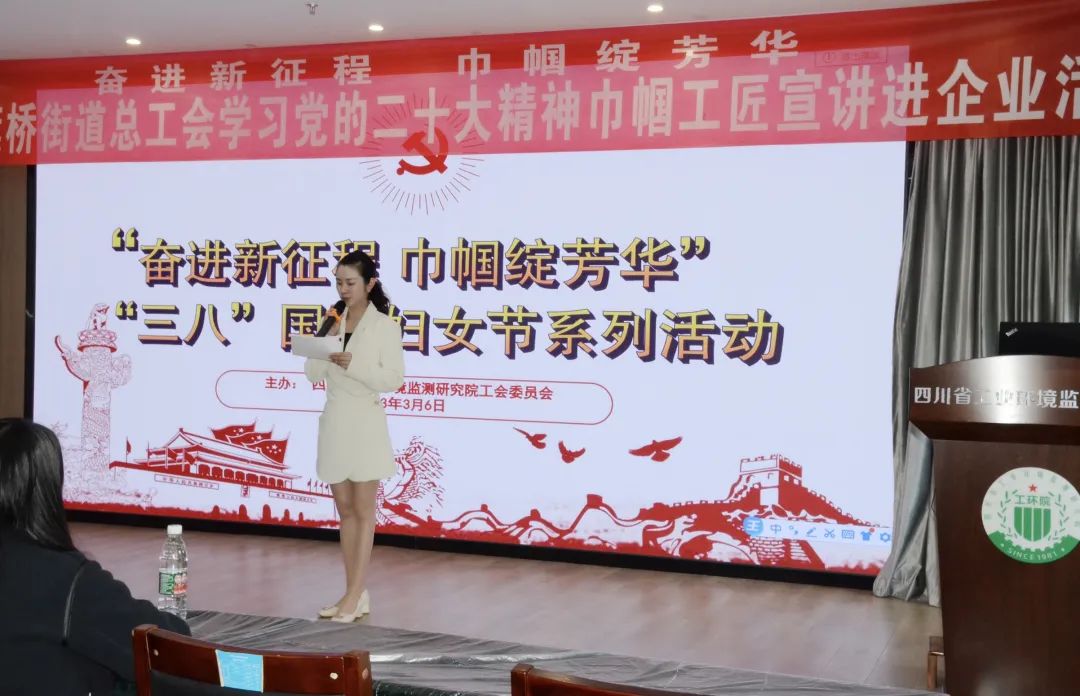 随后,武侯区簇桥街道总工会学习党的二十大精神巾帼工匠宣讲活开展。武侯区“诸葛工匠”、院女职工代表周淑春同志、刘阳同志分别作了题为《学深悟透精神实质·勇担生态环境监测人职责使命》《奋斗新征程·谱写绿色发展青春乐章》专题宣讲报告,从不同角度系统阐述了“深入学习和把握过去5年工作和新时代10年伟大变革的重大意义”“坚持问题导向和系统论、整体论的方法论,不断武装头脑、指导环境监测工作”等思考,深刻回答了如何坚定理想信念、练就过硬本领等青年担当问题。