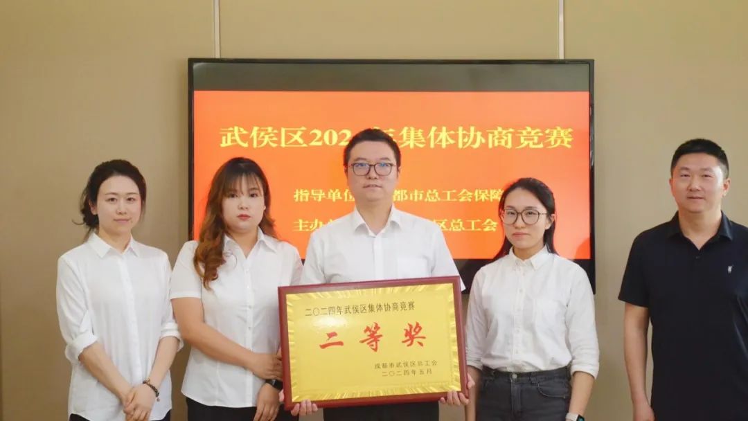 5月30日,“协商共建促发展·踔厉奋进新征程”2024年成都市武侯区集体协商竞赛暨第二届成都市集体协商选拔赛圆满落幕。由我院李思锐、罗汝颖、孙瑜琳、陈雅琪四名同志组成的代表队经过模拟赛和决赛两轮比拼,在10余支队伍的激烈角逐中脱颖而出,获得团体二等奖,我院李思锐同志获得“优秀选手”。